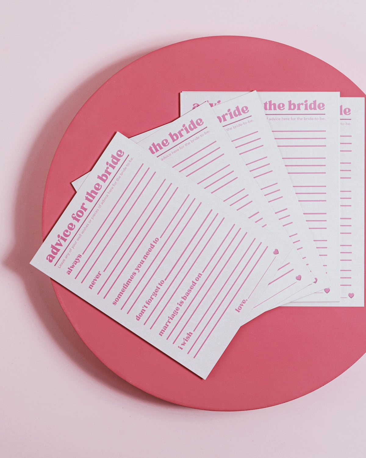 ‘Advice for the Bride’ fill out sheets.
