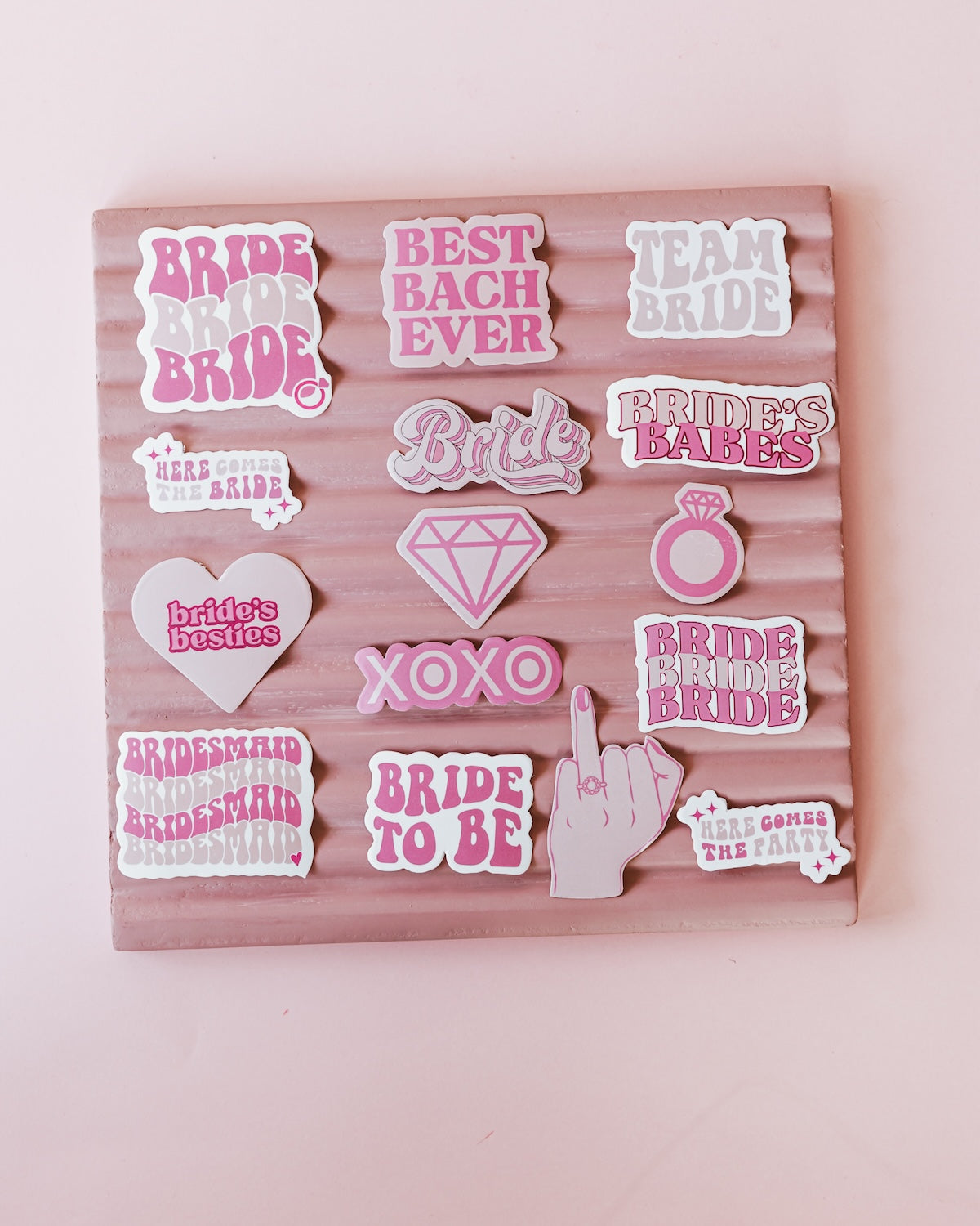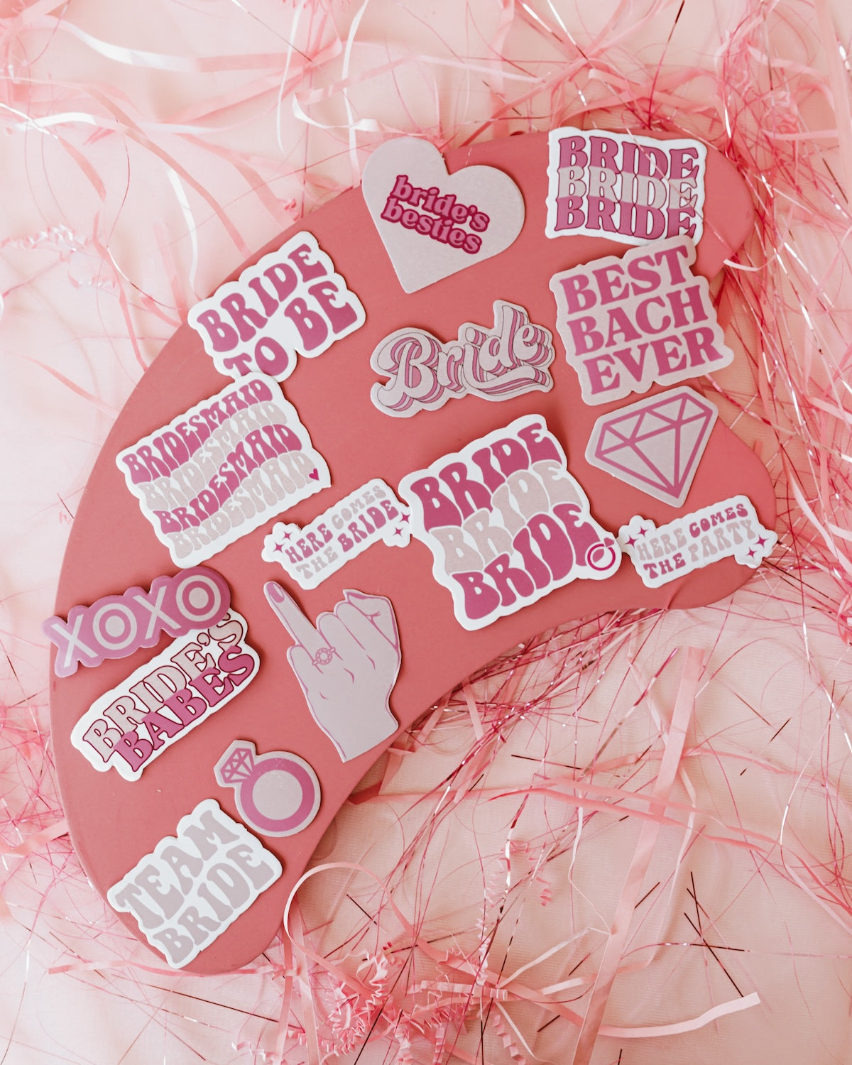 Pack of 15 pink and white bachelorette stickers – stickers varies in size.