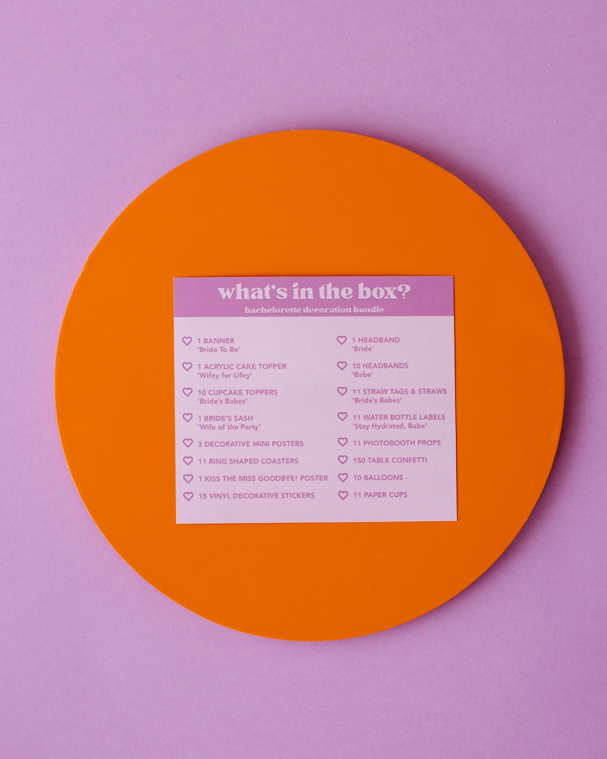 Get ready for the bachelorette party of a lifetime with our bachelorette party decorations bundle! This bundle is a must-have for any bride-to-be and her squad, featuring a collection of decorations designed to transform any space into the perfect bachelorette party. Inside this box you will find an assortment of decorations, props and much more to fill the day with memories to last a lifetime!